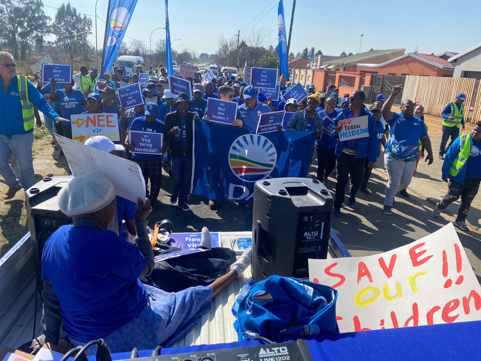 Today the Democratic Alliance (DA) took hands with the community and marched to the SAPS Station in Heidedal to highlight the tragedy that has struck once again at the Witherow Dam Quarry, with the most recent victim being Dustin Khukari. This string of unfortunate incidents underscores the perilous conditions at the quarry, posing a dire risk to our residents. Please see pictures here, here, here and here.